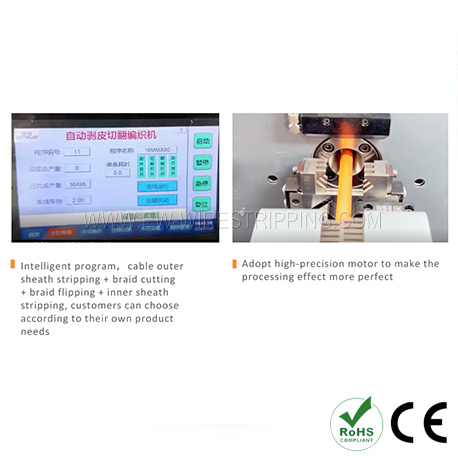 1. Зачистка внешней оболочки кабеля + резка оплетки + переворачивание оплетки + зачистка внутренней оболочки, клиенты могут выбирать в соответствии с собственными потребностями продукта