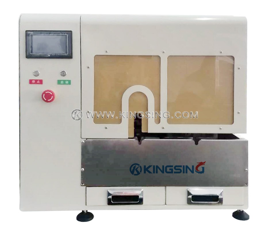 Это автоматическая машина для нанесения защитных щеток и обертывания медной фольгой. Внешнюю оболочку провода необходимо предварительно зачистить. Оператору нужно только вставить конец провода в приспособление, после чего он может автоматически очистить экран, отрезать экран, перевернуть экран и обернуть медной фольгой.