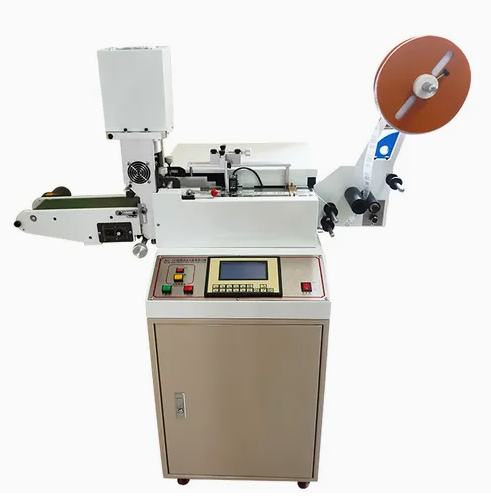 Это высокоскоростной ультразвуковой станок для резки этикеток и товарных знаков на одежде. Материалы запечатываются мгновенным нагревом от ультразвукового блока во время резки. Скорость резки может достигать 200-600 шт./мин.