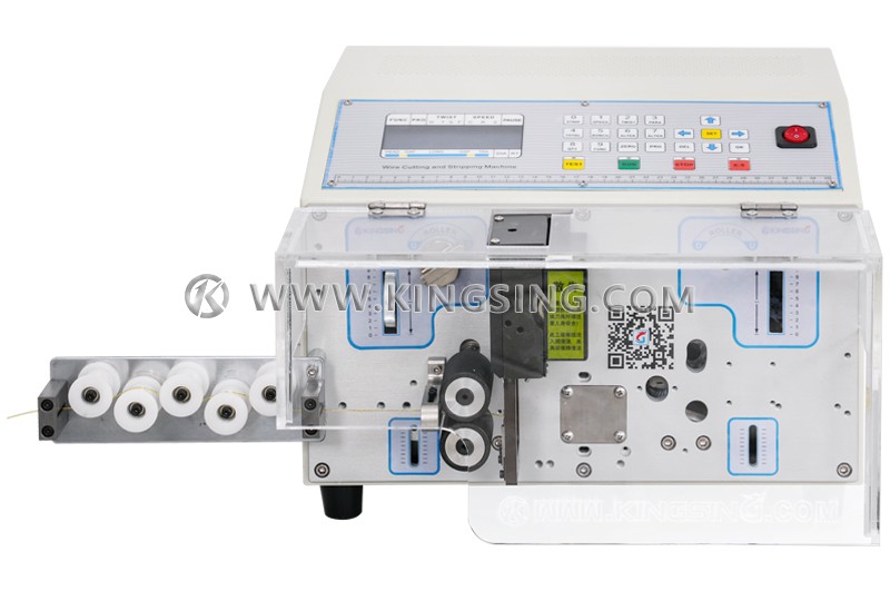 Аппарат для нарезки кембриков KS-W600 выполнен в виде короба. Его корпус сделан из тонкой стали, поставлен на резиновые ножки против скольжения. Принцип действия изделия очень простой. Задается длина фрагмента. Затем изоляция вводится в операционную зону, втягиваясь вальцовой парой с полимерными накладками. Нарезка выполняется гильотинными ножницами с остро заточенными лезвиями, изготовленными из прочной инструментальной стали.