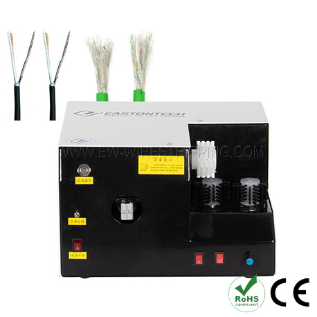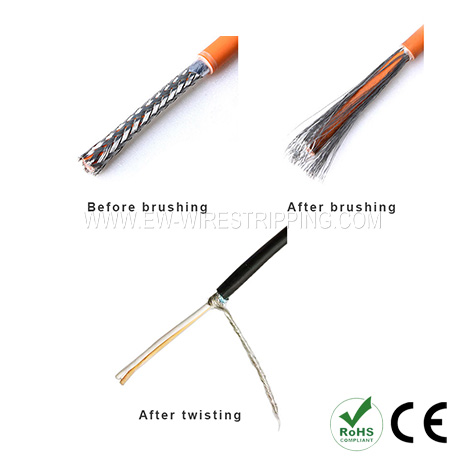 ● Машина для зачистки и скручивания оплетки экранированного кабеля EW-1015 в основном используется для зачистки и скручивания внешней оплетки экранированного кабеля.
