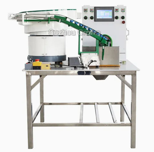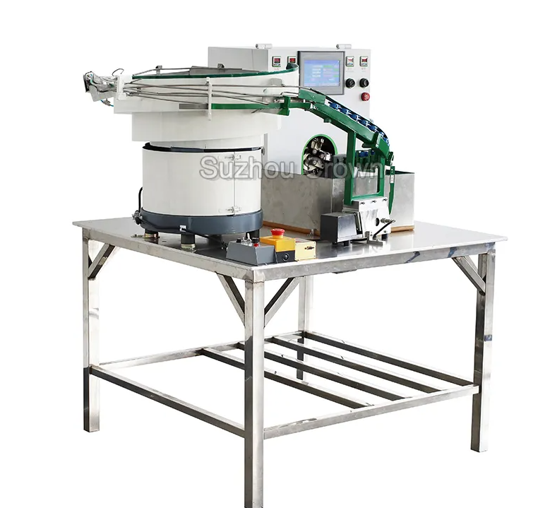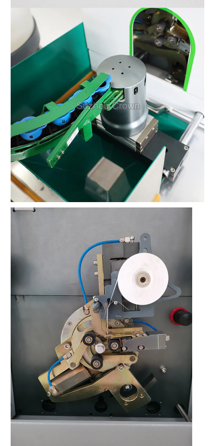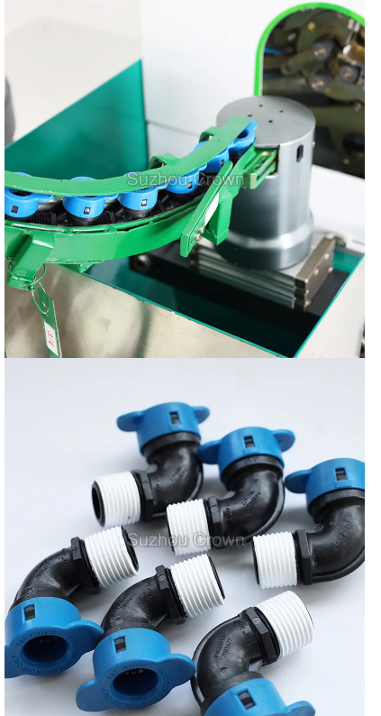 Это полностью автоматический станок для обмотки фитингов ПТФЭ-лентой. Оператору нужно лишь поместить резьбовое соединение в виброплощадку, и оборудование автоматически намотает ПТФЭ-ленту на фитинг.