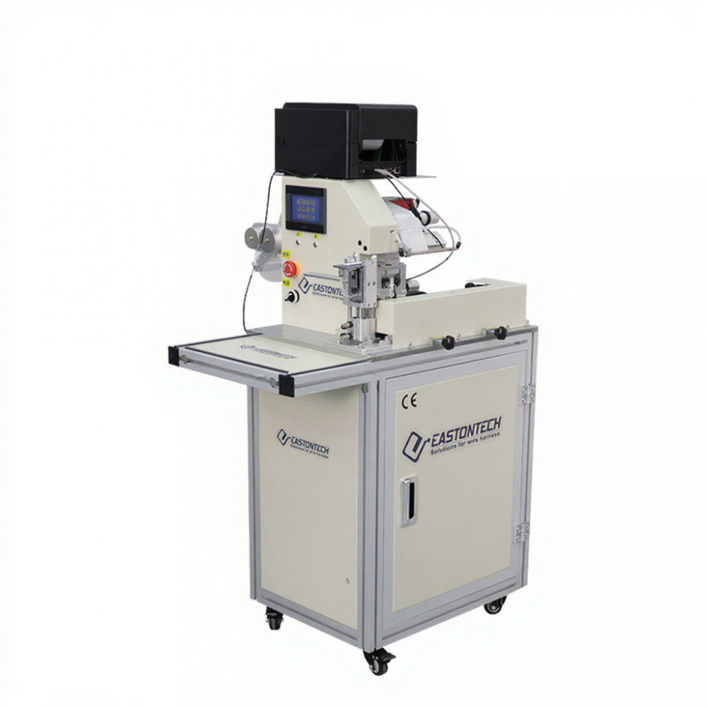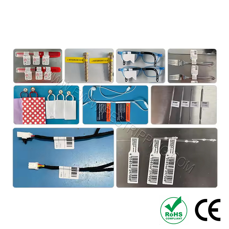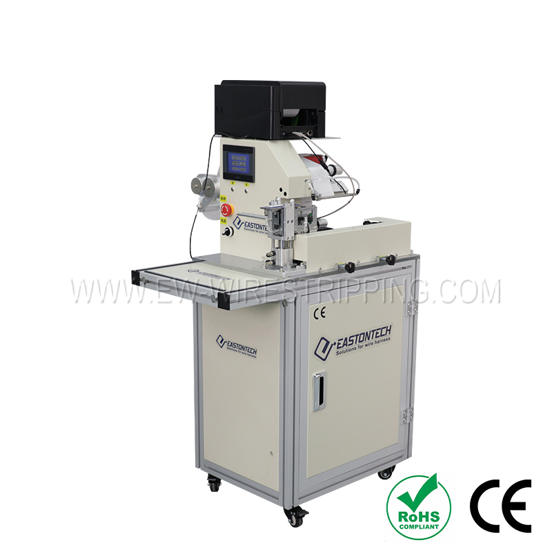 ● Этикетка автоматически подается на место, отделяется и автоматически складывается пополам на проволоке.