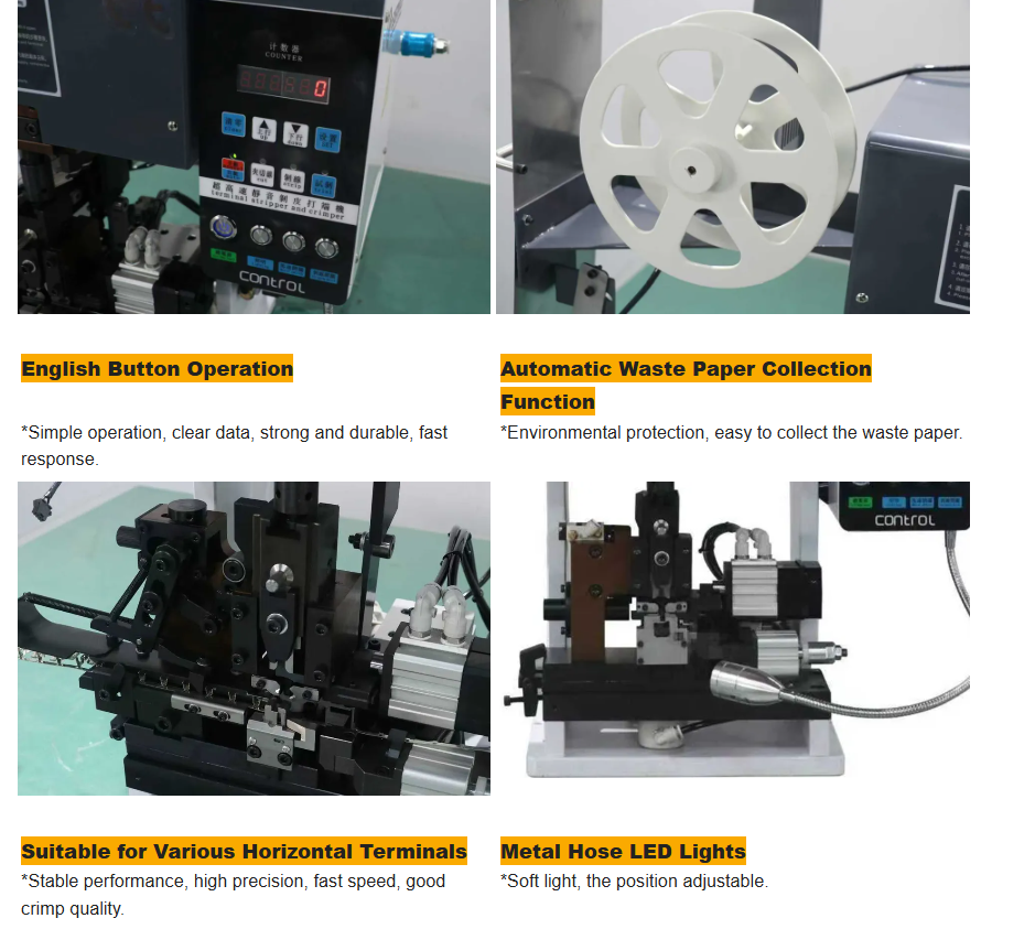 Это высокоточный станок для зачистки и обжима проводов, объединяющий функции зачистки и обжима клемм. Весь станок отличается высокой точностью изготовления, а точность обжима достигает 0,05 мм. Сверху расположена ручка для регулировки хода, которая позволяет высокоточно настроить ход обжима. Корпус изготовлен из прочных материалов и обладает высокой жесткостью. Поддерживается опциональный высокоточный датчик силы обжима. Специально разработанный подвес позволяет установить высокочувствительный датчик силы обжима подвесного типа. Он автоматически подает сигнал тревоги при отклонении силы обжима от нормы.