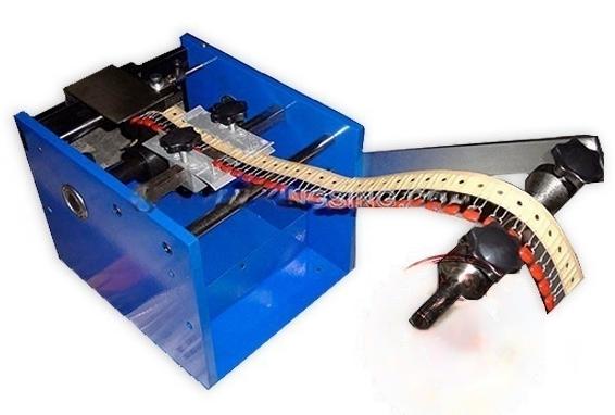 Станок для отрезания выводов компонентов KS-F200 – это настольный механический металлорежущий инструмент, предназначенный для подготовки конденсаторов, резисторов, термисторов, светодиодов и транзисторов к интеграции в поле микросхемы. Его функция в том, чтобы аккуратно вырезать компоненты с односторонним радиальным креплением из ленты на заданную длину, при этом толщина крепления не должна выходить за пределы 0,4...1,0 мм.