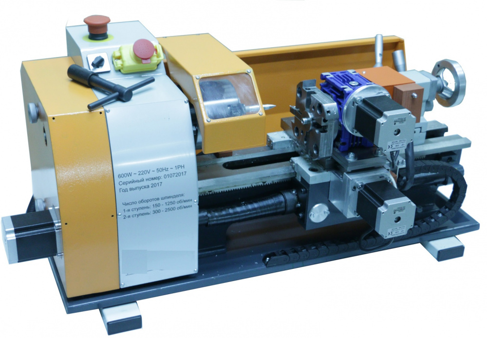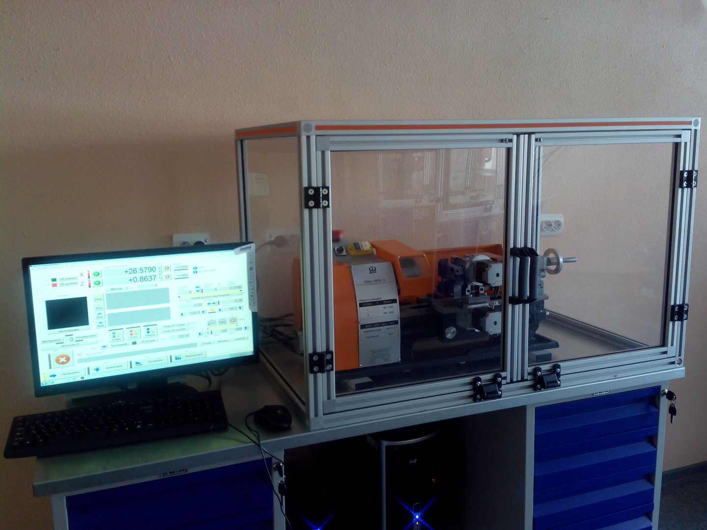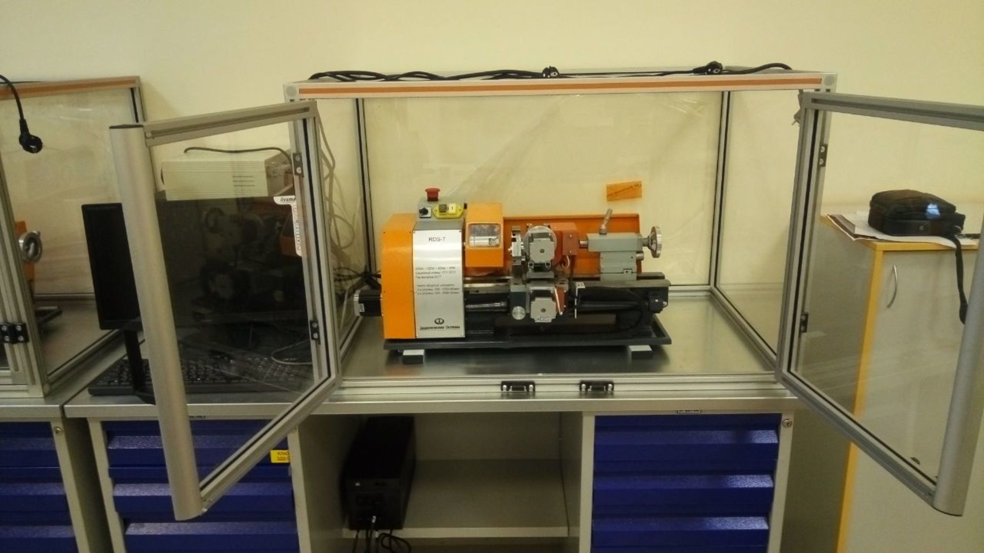 Станок токарный с числовым программным управлением, оснащенный щитком- экраном из оргстекла предназначен для практического освоения учащимися всех этапов подготовки производства, технологических режимов токарной обработки и изготовления деталей из типовых конструкционных материалов точением на станке с ЧПУ, а так же изучении основ работы наладчиков станков с ЧПУ.