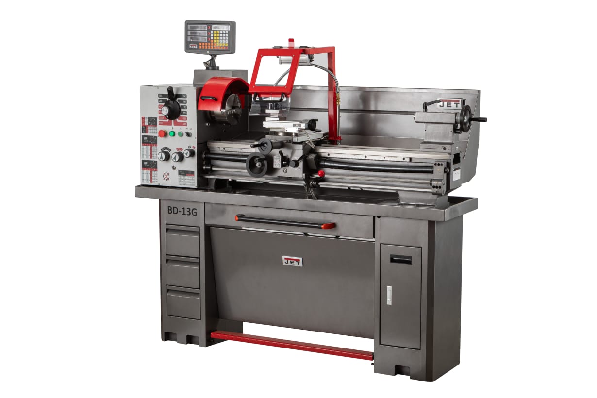 JET BD-13G - универсальный токарно-винторезный станок, предназначенный для работы с черными металлами и цветными сплавами, а также для нарезания метрических и дюймовых резьб. Станок предназначен для профессиональных мастерских, автосервисов, предприятий малого и среднего бизнеса, а также для домашних мастеров, мобильных ремонтных бригад и учебных заведений. Токарный станок модели BD-13G является самым большим и оснащенным из бытовой серии станков JET.