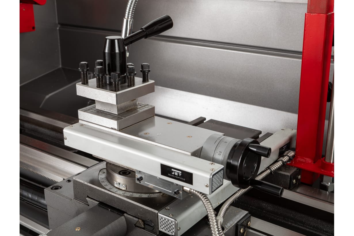 JET BD-13G имеет 15 типов продольных и поперечных подач в автоматическом режиме, а также позволяет нарезать 18-ть видов метрических и 13-ть видов дюймовых резьб. Для удобства нарезания длинных резьб, станок укомплектован резьбоуказателем. На станке предусмотрена возможность нарезания правой и левой резьбы