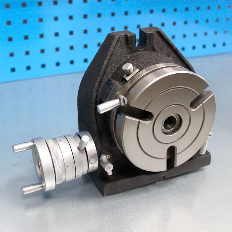Стол поворотный модели RT125 с диаметром планшайбы 125 мм предназначен для поворота закрепленной на нем заготовки на заданный угол. Может быть установлен в вертикальное и горизонтальное положение. В столе есть внутреннее конусное отверстие для центрирования оснастки. Механизм привода позволяет регулировать червяк и размыкать его. Предусмотрена возможность выбора люфта в передаче.