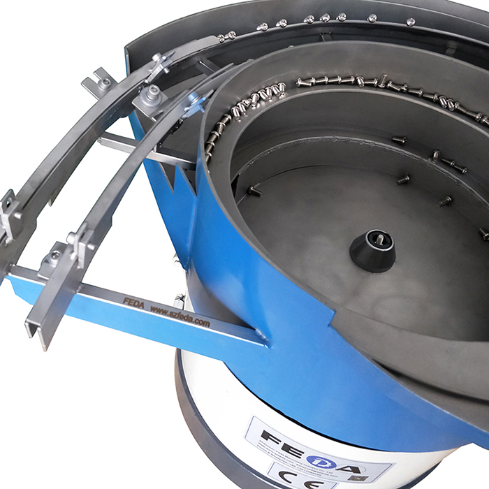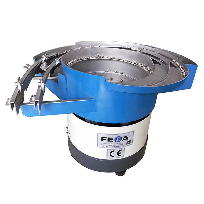 Под верхней чашей находится импульсный электромагнит, который может заставить чашу вибрировать в вертикальном направлении, а наклонная пружинная пластина заставляет чашу совершать крутильную вибрацию вокруг своей вертикальной оси. Детали в чаше поднимаются по спиральной дорожке из-за этой вибрации. После серии орбитальных просеиваний или изменений положения во время процесса подъема детали могут автоматически попадать в положение сборки или обработки в едином состоянии в соответствии с требованиями сборки или обработки. Его рабочее назначение — автоматически и упорядоченно размещать неупорядоченные заготовки аккуратно и точно посредством вибрации для следующего процесса.