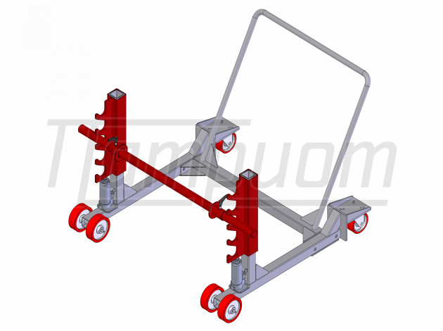 Использование гидравлических домкратов повышенной грузоподъёмности обеспечивает дополнительную надёжность и длительный срок эксплуатации тележки.