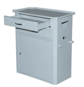 Шкаф инструментальный изготовлен из листовой стали толщиной 1-1,5 мм, имеет овальные борта и резиновый коврик на столешнице. Выдвижные ящики оснащены ложементами для хранения принадлежностей заточного станка. Внутри тумбы организовано место для установки пылесоса (вакуумного очистителя) для удаления абразивной и металлической пыли из зоны обработки. На боковой стенке шкафа предусмотрены крепления для укладывания кабеля питания, а также электрический блок с выключателем и двумя розетками 220 В. Шкаф инструментальный для заточного станка оснащен четырьмя поворотными колесами для удобства его перемещения и системой блокировки колес (тормоз).